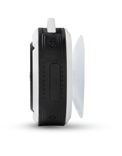 Mały głośnik z przyssawką FUSION. Świetnie nadaje się do użytku turystycznego i na co dzień np. przy lekkim deszczu. Możliwość wykorzystania głośnika jako zestawu głośnomówiącego. Odtwarzanie muzyki jest możliwe za pośrednictwem bluetooth (wersja 4.2) lub karty micro SD. W zestawie kabel do ładowania z końcówką microUSB i karabińczyk. Posiada metalową płytkę przeznaczoną do wykonania znakowania. Produkt jest zgodny z odpowiednimi dyrektywami Unii Europejskiej oraz posiada znak CE. Dane techniczne: Moc wyjściowa: 3W x 1 Napięcie: 5V Stosunek S/N: ≥ 70 dB, czas pracy: 1-1,5 godziny, pojemność baterii 300mAh