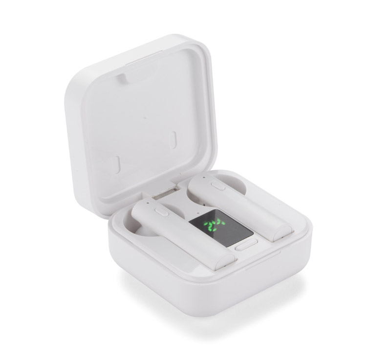 Słuchawki bezprzewodowe SUONO charakteryzują się bardzo dobrą jakością dźwięku i wygodą ze względu na doskonałe wyprofilowanie. Poręczne etui służy również jako stacja ładująca. Można je zasilać tradycyjnie poprzez ładowakę lub korzystając z panelu solarnego. Pojemność akumulatora to 200mAh do naładowania którego wystarczy około 5-6 godzin na słońcu. Pojemność słuchawek to 30mAh, które wystarczy na około 2 godziny czasu pracy. Wbudowany mikrofon pozwala na prowadzenie rozmów telefonicznych, a umieszczone na słuchawkach przyciski pozwalają na pauzowanie, przewijanie utworów, jak i na wezwanie asystenta głosowego. Wyświetlacz wskazuje na stopień naładowania baterii, jak i powiadamia nas o rozpoczęciu ładowania słuchawek. Zgodność z bluetooth 5.0, możliwość używania tylko jednej słuchawki.