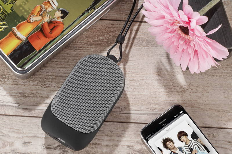 Głośnik bezprzewodowy CADENA zapewnia radość z ulubionej muzyki w każdym miejscu. Wyposażony jest w wygodny uchwyt, który umożliwia łatwe przenoszenie lub zawieszenie. Produkt posiada radio FM, Bluetooth 5.0, możliwość ładowania w nowym standardzie USB-C oraz funkcję Twins, która pozwala na połączenie dwóch głośników jednocześnie i przesyłanie dźwięku z jednego urządzenia. Bateria umożliwia pracę do 3 godzin na jednym ładowaniu.