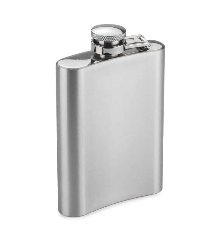 Piersiówka ze stali nierdzewnej o pojemności 110 ml, z bezpiecznym zamknięciem. Logo wykonujemy na powierzchni piersiówki poprzez grawerowanie laserem.