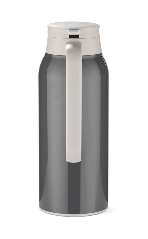 Dzbanek termiczny POTI o pojemności 1300 ml to praktyczny upominek w modnych kolorach szarości. Wykonany ze stali. Wnętrze dzbanka wykonane ze stali nierdzewnej o podwyższonym standardzie. Posiada wygodny uchwyt i przycisk do nalewania napojów. Utrzymuje temperaturę do 13 godz.