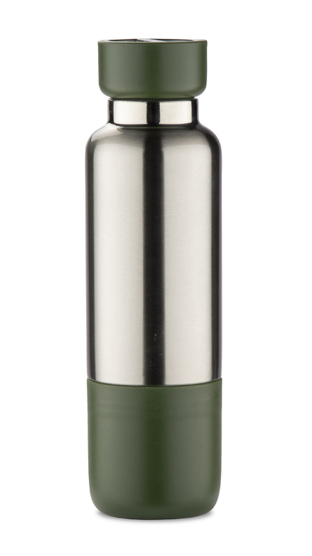 Butelka termiczna RON to doskonały wybór dla aktywnych osób, które cenią sobie zarówno wygodę, jak i funkcjonalność. Będzie idealna na trening i spontaniczne wyprawy. Butelka jest wyposażona w karabińczyk oraz dwie smycze: krótką i długą na zmianę, umożliwiające wygodne przenoszenie i łatwe dostosowanie do różnych sytuacji. Wystarczy założyć ją na nadgarstek podczas biegu lub zawiesić na plecach podczas wędrówki. Dodatkowo RON posiada zamknięcie z praktycznym schowkiem na drobiazgi (np. tabletki czy suplementy diety). Unikalna podstawa z tworzywa, która po wykręceniu staje się dodatkowym kubkiem, eliminuje ryzyko poparzenia języka i pozwala na wygodniejsze spożywanie napoju.