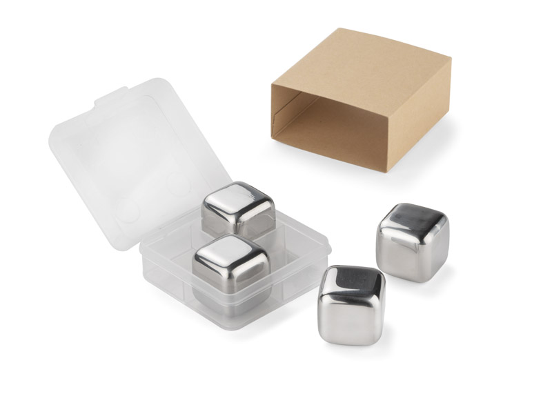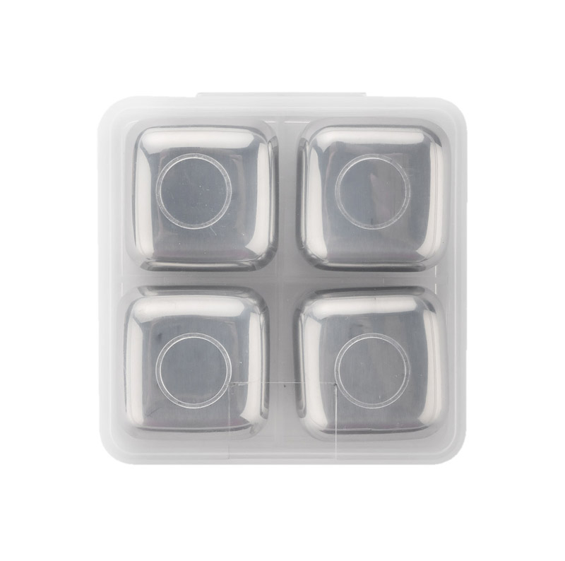 Kostki chłodzące do napojów wykonane są ze stali nierdzewnej o podwyższonym standardzie i zapakowane w wygodne etui z tworzywa. Zestaw zawiera 4 kostki, które należy umieścić na minimum 4 godziny w zamrażarce, aby schłodziły się do pożądanej temperatury i wrzucić do szklanki z napojem. Doskonały gadżet zamiast tradycyjnych kostek lodu, gdyż nie rozcieńcza napoju.