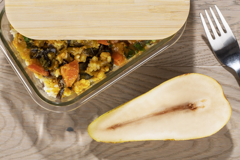 Pojemnik na żywność ALVA wykonany jest z wysokiej jakości szkła borokrzemowego. Pojemnik posiada przykrywkę z naturalnego bambusa. Można go stosować jako pojemnik lunchowy, jako pojemnik do przechowywania żywności, a ponadto można w nim podgrzewać potrawy w piekarniku lub kuchence mikrofalowej. Pojemność 430 ml.