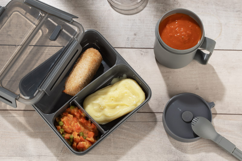 Pojemnik na zupę NODSY to przydatny i praktyczny gadżet. To znakomite rozwiązanie aby zabrać ze sobą zupę na przykład do pracy. Posiada wygodny uchwyt i dołączony składany łyżko-widelec. Pojemnik nadaje się do użycia w kuchenkach mikrofalowych, zmywarkach a także można w nim mrozić. Pojemność 500 ml.