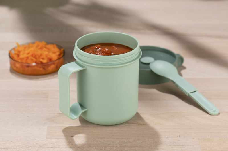Pojemnik na zupę NODSY to przydatny i praktyczny gadżet. To znakomite rozwiązanie aby zabrać ze sobą zupę na przykład do pracy. Posiada wygodny uchwyt i dołączony składany łyżko-widelec. Pojemnik nadaje się do użycia w kuchenkach mikrofalowych, zmywarkach a także można w nim mrozić. Pojemność 500 ml.