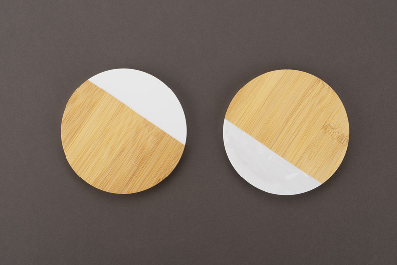 Zestaw dwóch podkładek pod kubek wykonanych z połączenia bambusa i sztucznego marmuru. Materiał jest wytrzymały i odporny na uszkodzenia. Podkładki prezentują się elegancko i z pewnością będą pasowały do niejednego wnętrza. Zapakowane w kraftowe pudełko.
