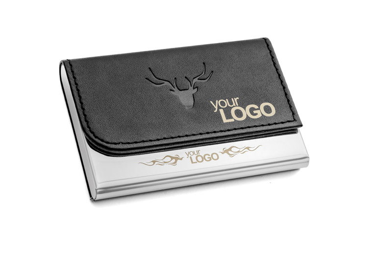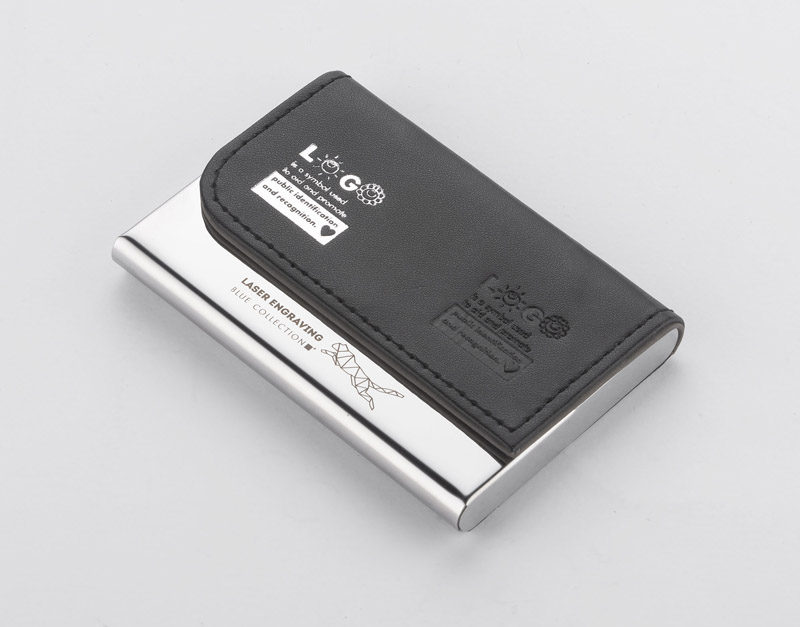 Elegancki wizytownik z materiału skóropodobnego (PU) z zapięciem na magnes. Mieści 20 wizytówek. Logo tłoczymy lub grawerujemy na powierzchni z materiału.