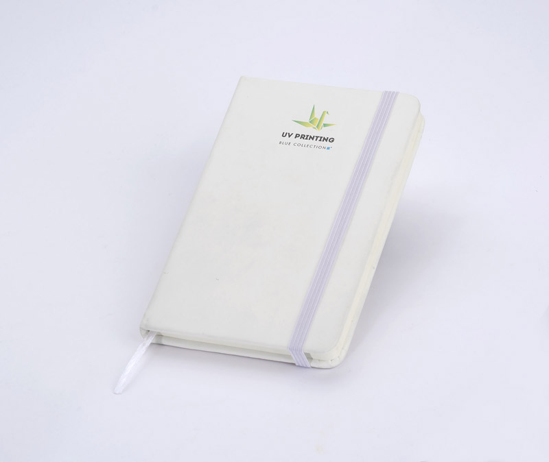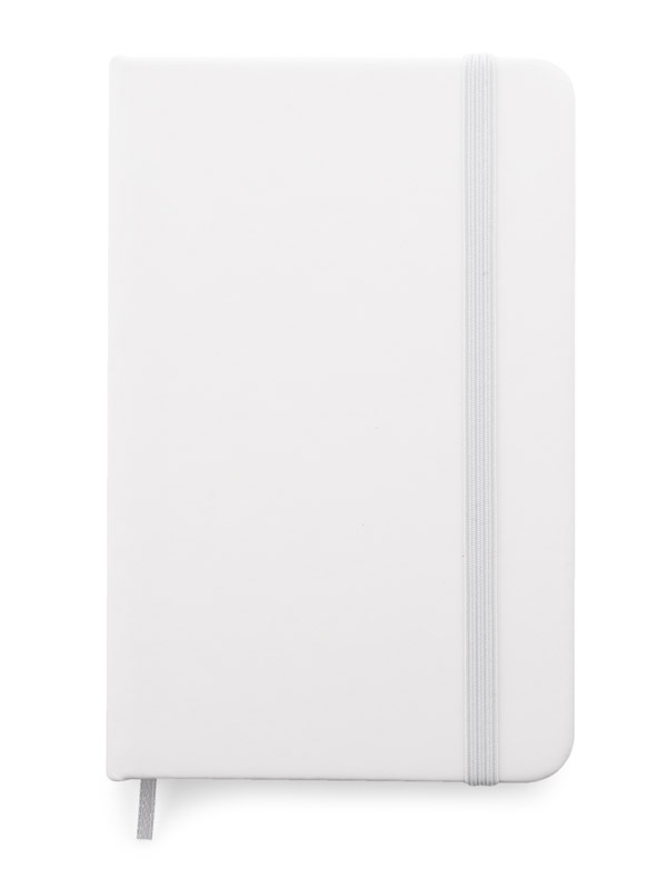 Gustowny notes A6 z kolorową gumką wykonany z materiału skóropodobnego (PU). Notes zawiera 80 kartek ecru w linie koloru pomarańczowego. Logo nadrukujemy na okładce.