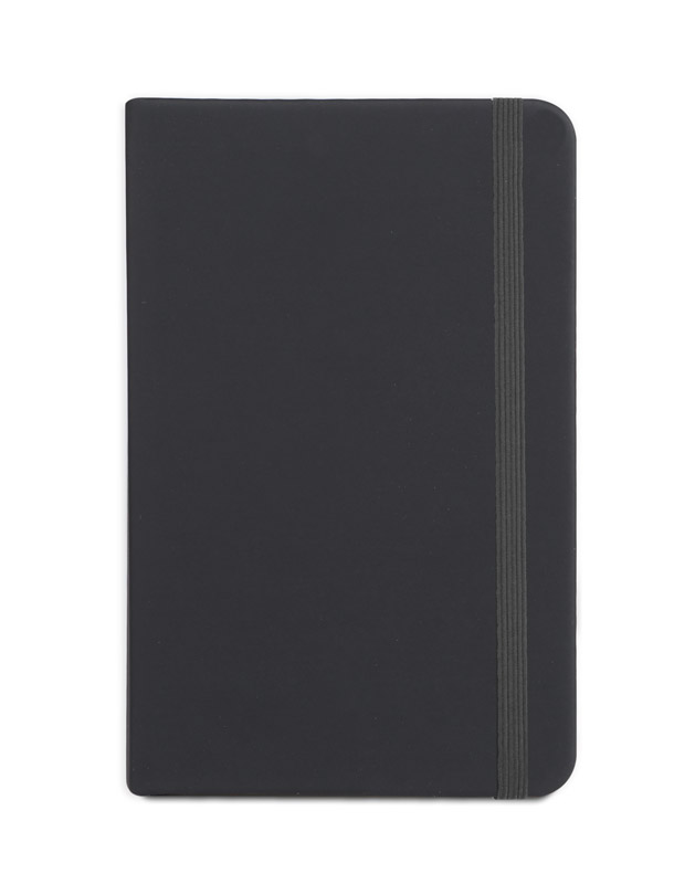 Gustowny notes A6 z kolorową gumką wykonany z materiału skóropodobnego (PU). Notes zawiera 80 kartek ecru w linie koloru pomarańczowego. Logo nadrukujemy na okładce.