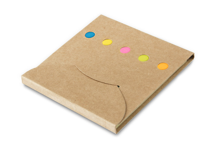 Mały zestaw karteczek samoprzylepnych w ekologicznym opakowaniu. Logo nadrukujemy na powierzchni produktu.
