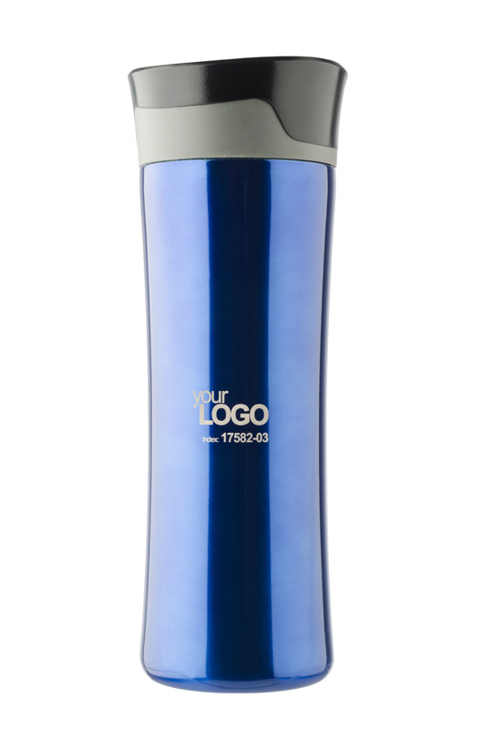Niesamowity gadżet łączący w sobie poręczność kubka termicznego z właściwościami termosu. Pojemność 400 ml. Wykonany z metalu i tworzywa, wnętrze ze stali nierdzewnej. Utrzymuje temperaturę aż do 10 h. Wieczko otwiera się za pomocą specjalnego przycisku. Kubek niekapek, zapewniający bardzo wysoki poziom szczelności. Znakowanie możliwe na korpusie.