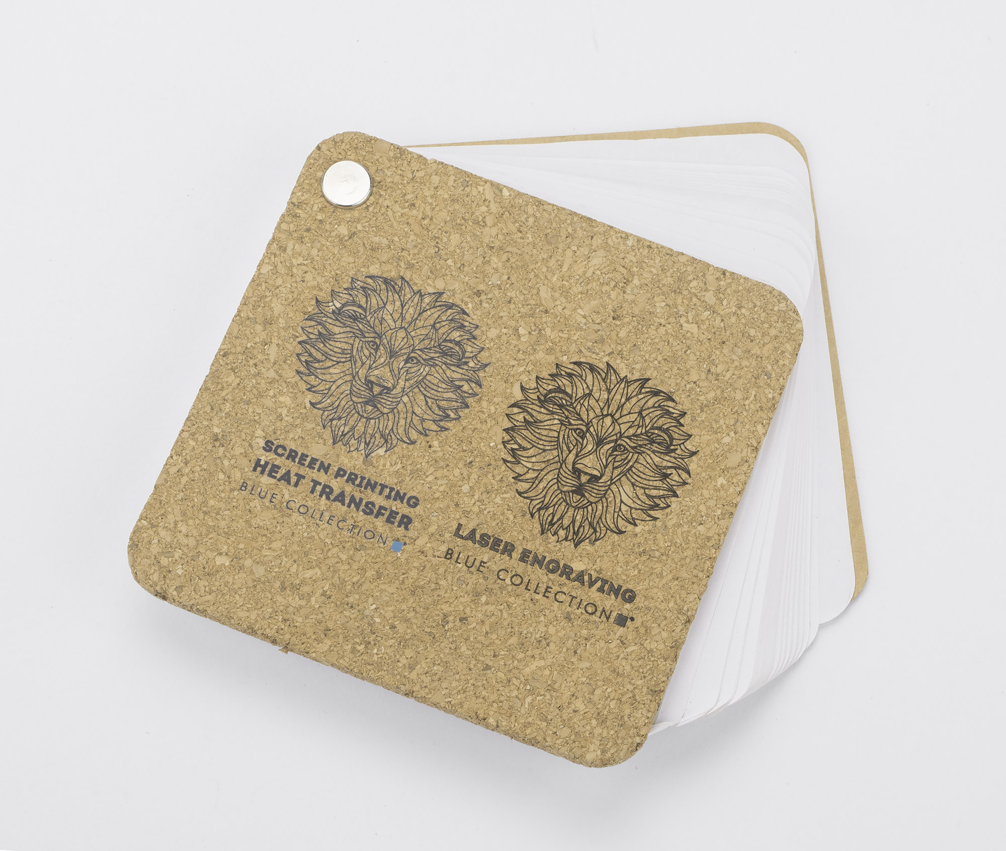Notes zawierający 60 białych kartek może także posłużyć jako korkowa podstawka pod kubek. Logo możemy nadrukować na powierzchni korkowej i tekturowej.
