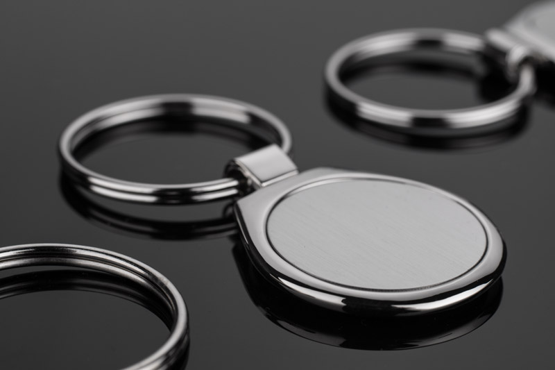 Brelok o klasycznym kształcie wykonany z chromowanego metalu. Logo wygrawerujemy na blaszce umieszczonej wewnątrz.
