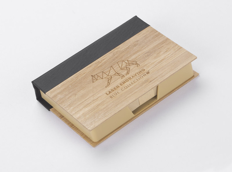 Zestaw karteczek na biurko zapakowany w etui wykonane z bambusa. W zestawie znajdują się brązowe karteczki do zapisków.