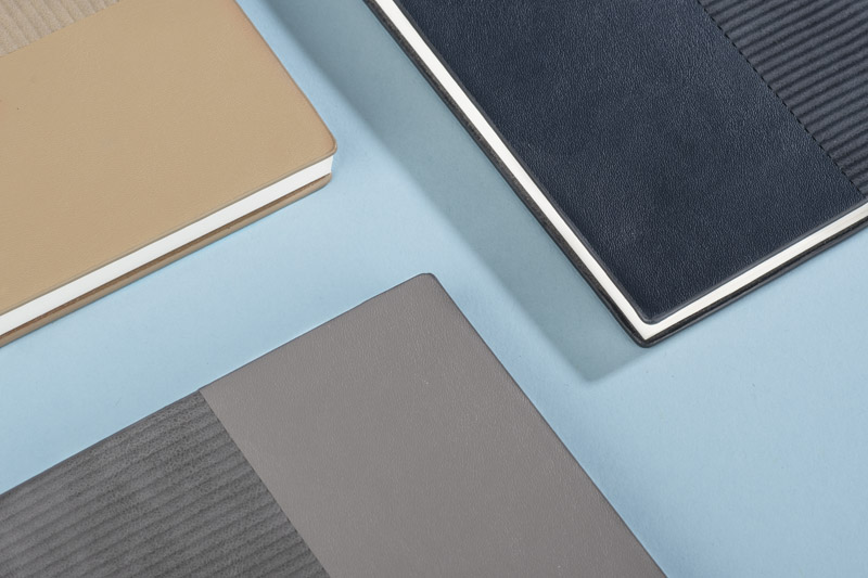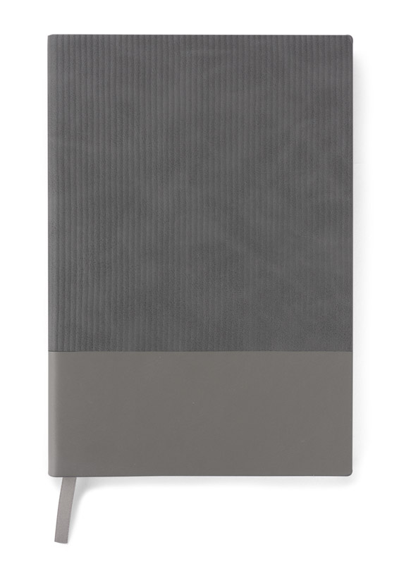 Notes FLAF w formacie A5 ma miękką okładkę łączącą materiał skóropodobny (PU) z imitacją sztruksu, co nadaje mu przyjemną, tekstylną fakturę. W środku znajduje się 80 kartek w kropki oraz praktyczna wstążka pełniąca funkcję zakładki.