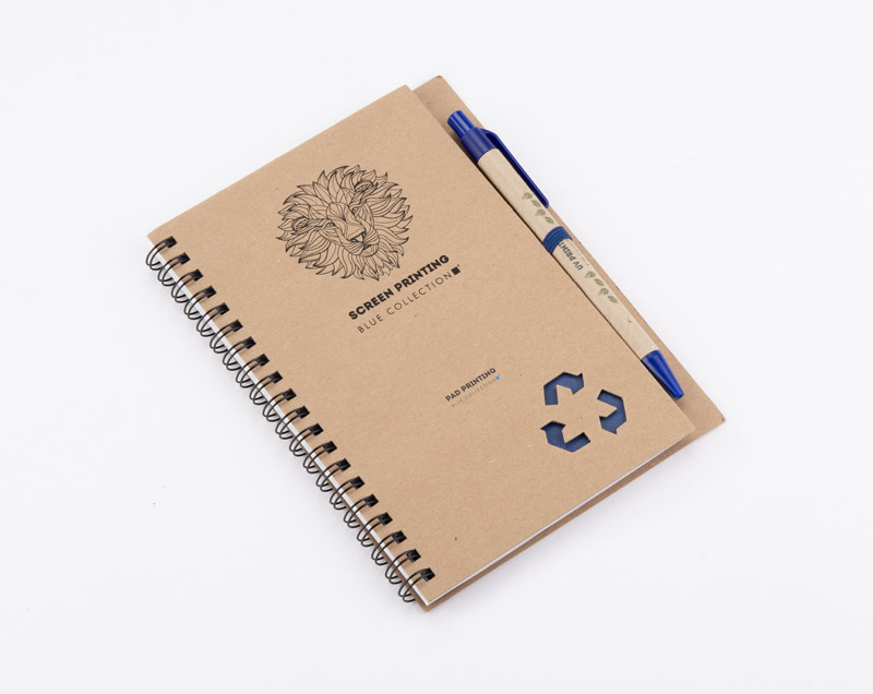 Notes SERENO na spirali w klasycznej, papierowej okładce. Posiada 70 kartek w linie. Do notesu dołączony jest w wyprofilowanym miejscu długopis, którego korpus wykonany jest z papieru. Wykończenia długopisu pasują kolorystycznie z przekładką notesu. Wkład w długopisie w kolorze niebieskim.