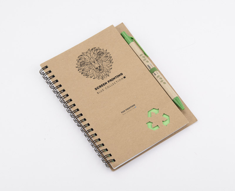 Notes SERENO na spirali w klasycznej, papierowej okładce. Posiada 70 kartek w linie. Do notesu dołączony jest w wyprofilowanym miejscu długopis, którego korpus wykonany jest z papieru. Wykończenia długopisu pasują kolorystycznie z przekładką notesu. Wkład w długopisie w kolorze niebieskim.
