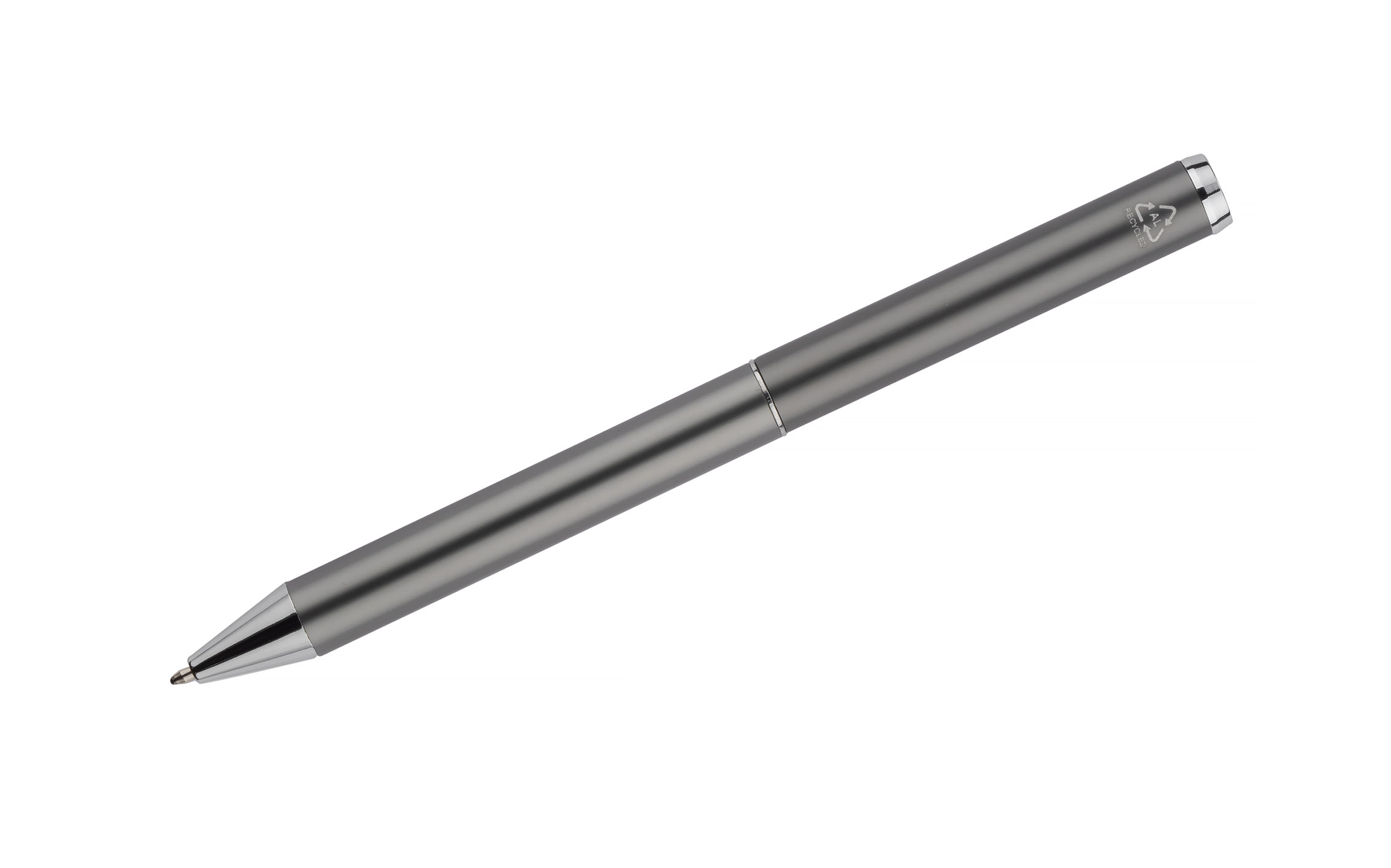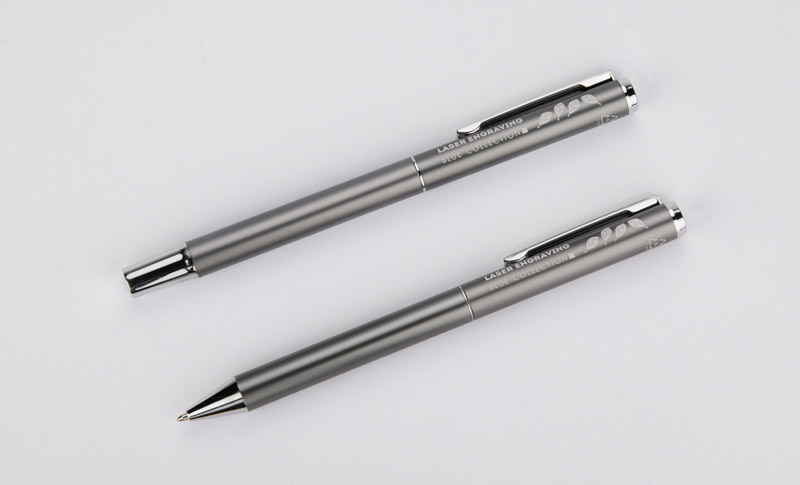 Zestaw ILLINOIS to zestaw prezentujący się niezwykle estetycznie, w którego skład wchodzi długopis i pióro kulkowe. Wykonany został z recyklingowanego aluminium. Kolor wkładu niebieski. Wymiary produktu: 140 x ⌀ 10 mm (długopis); 143 x ⌀ 10 mm (pióro kulkowe); 180 x 55 x 24 mm (pudełko)