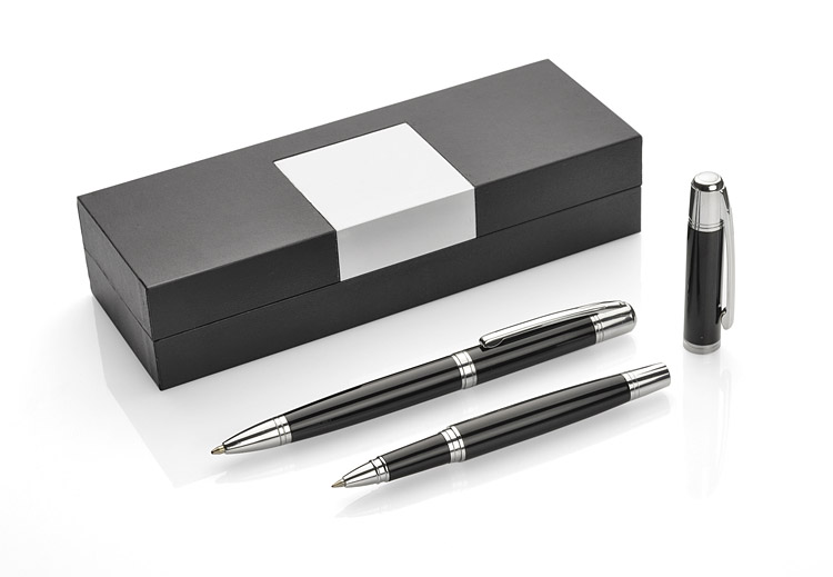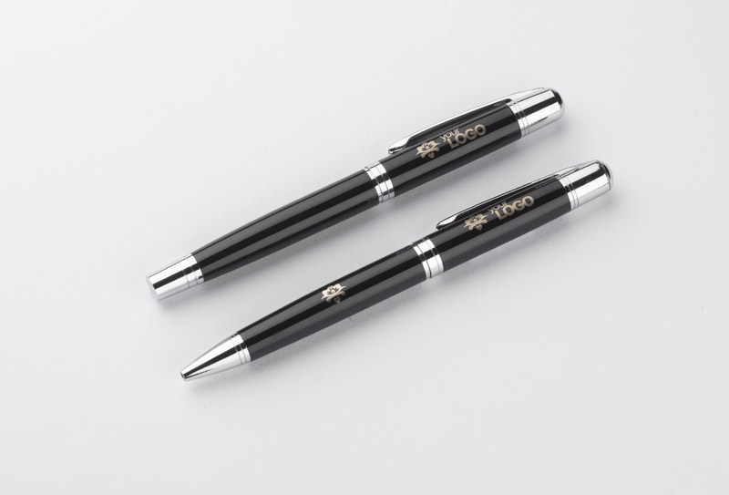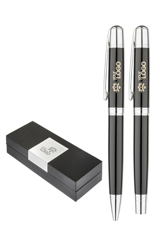 Elegancki komplet piśmienniczy CALIFORNIA składający się z długopisu i pióra kulkowego zapakowanych w etui. Logo wygrawerujemy na blaszce umieszczonej na etui.