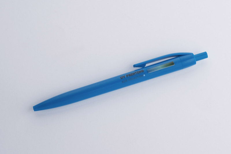 Plastikowy długopis BASIC z niebieskim wkładem. Logo nadrukujemy na korpusie.