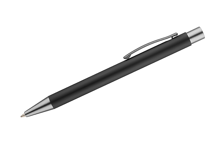 Długopis GOMA to prosty design połączony z przyjemną w dotyku gumowaną powierzchnią. Całość jest utrzymana w lekkich, matowych barwach. Wykonany z aluminium. Wykończenia w kolorze grafitowym. Wkład w kolorze czarnym.