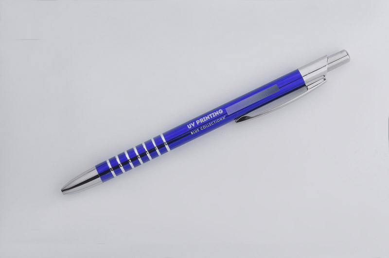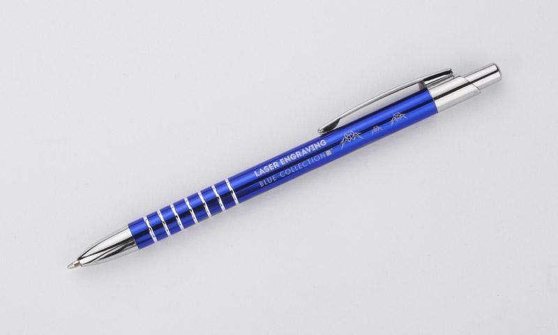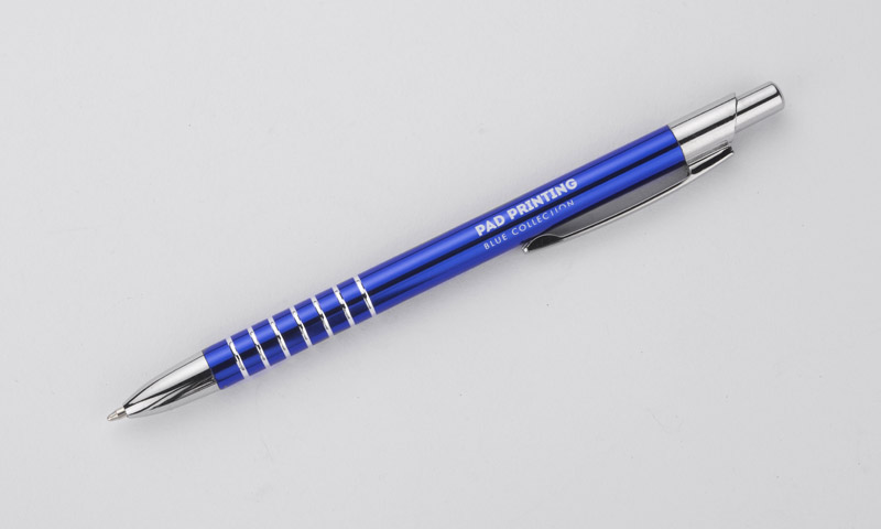 Prosty długopis wykonany z aluminium ozdobiony szerokimi ringami. Logo wygrawerujemy.