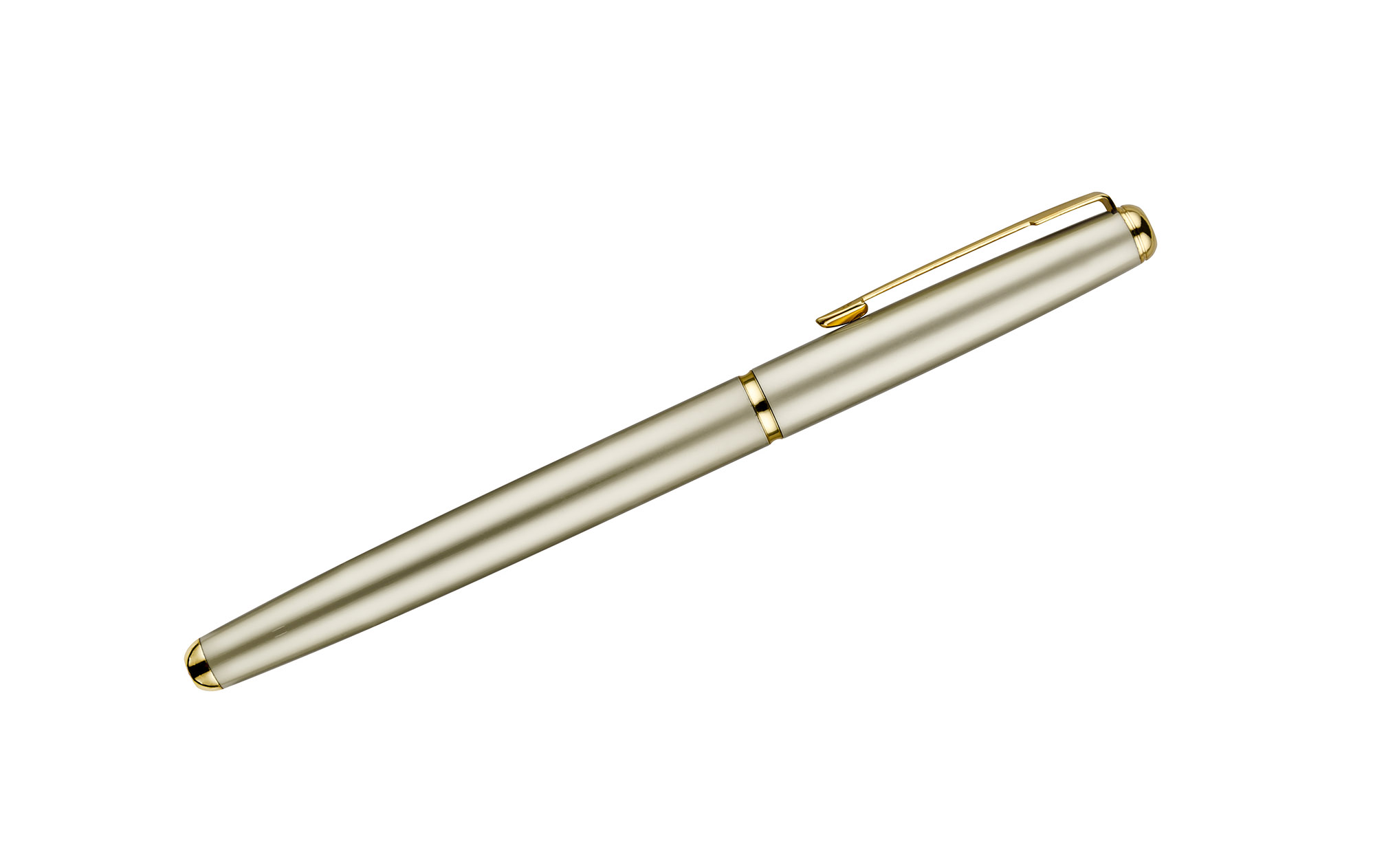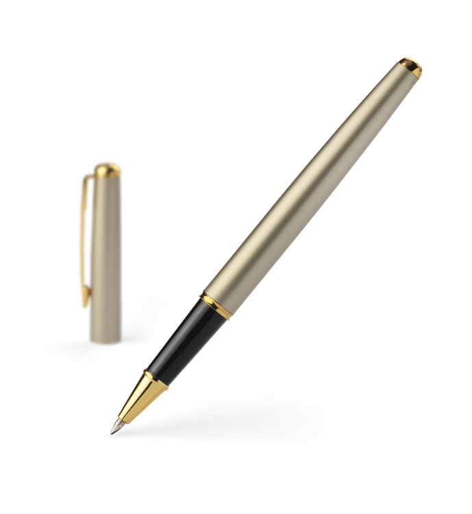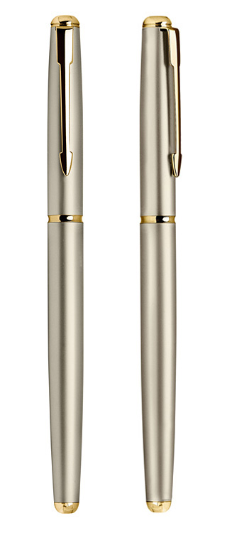 Pióro kulkowe wykonane z metalu ze złotymi wykończeniami. Klasyczne wzornictwo zapewnia mu ponadczasową elegancję.