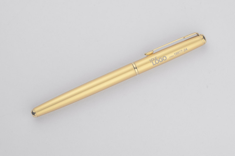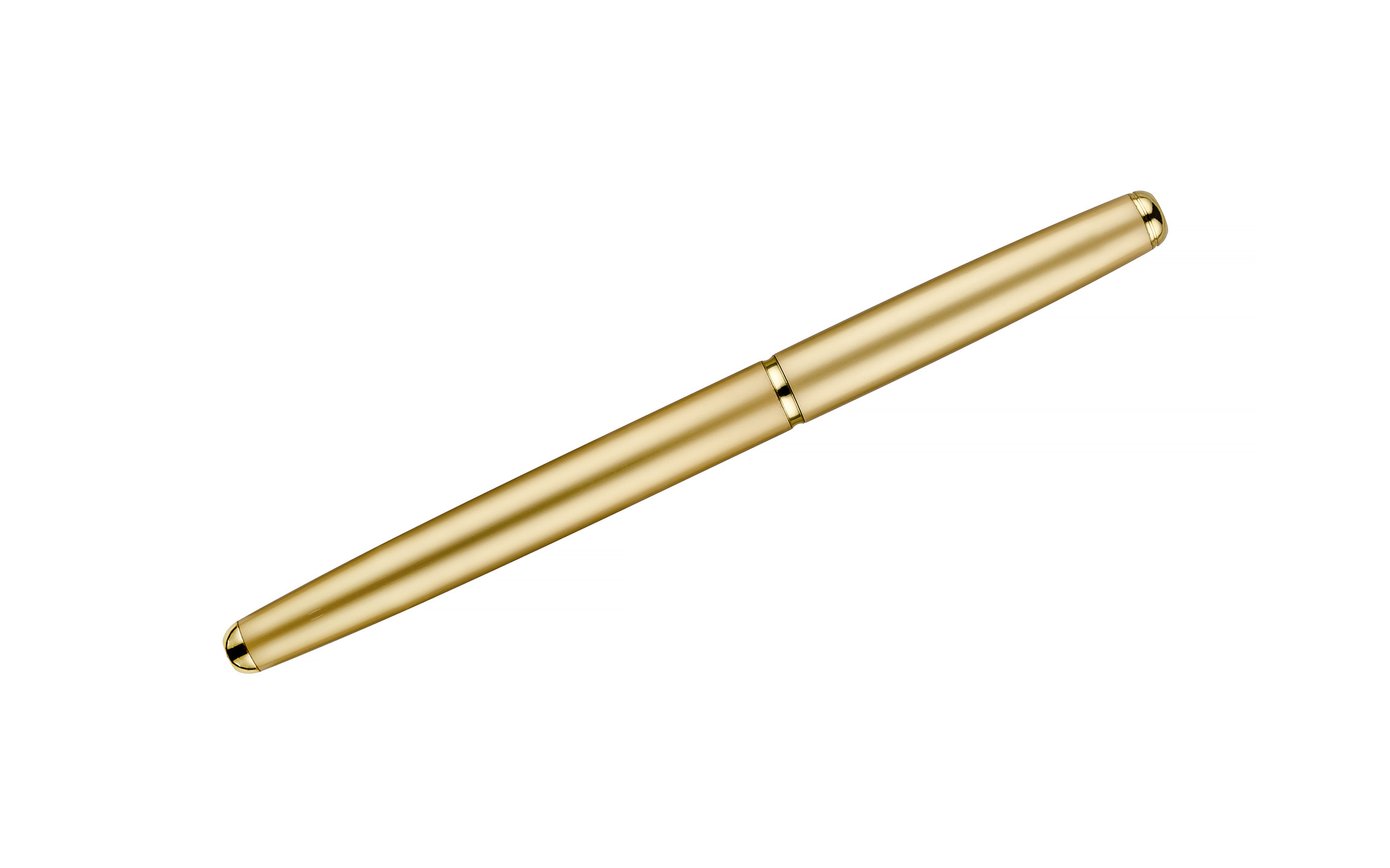 Pióro kulkowe wykonane z metalu ze złotymi wykończeniami. Klasyczne wzornictwo zapewnia mu ponadczasową elegancję.