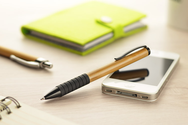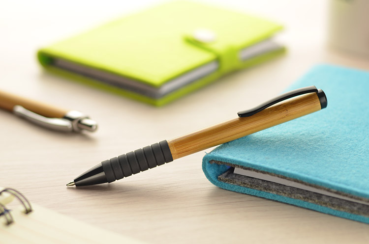 Miła odskocznia od tradycyjnych metalowych i plastikowych długopisów. Ten gadżet posiada korpus wykonany z litego kawałka bambusu. Całość uzupełniają gustowne wstawki i elementy mechanizmu w kolorze czarnym. Znakowanie możliwe na bambusowej części korpusu.