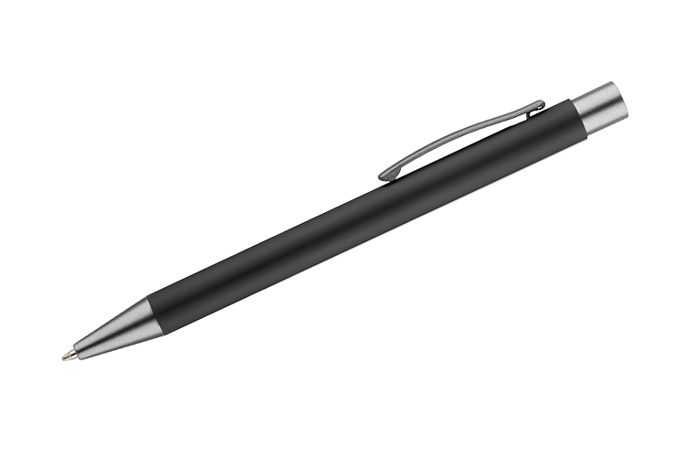 Długopis GOMA to prosty design połączony z przyjemna w dotyku gumowana powierzchnią. Całość jest utrzymana w lekkich, matowych barwach. Wykonany z aluminium. Wykończenia w kolorze grafitowym. Wkład w kolorze niebieskim.