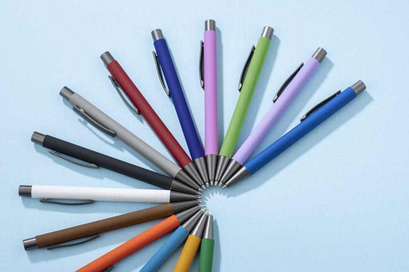 Długopis GOMA to prosty design połączony z przyjemna w dotyku gumowana powierzchnią. Całość jest utrzymana w lekkich, matowych barwach. Wykonany z aluminium. Wykończenia w kolorze grafitowym. Wkład w kolorze niebieskim.