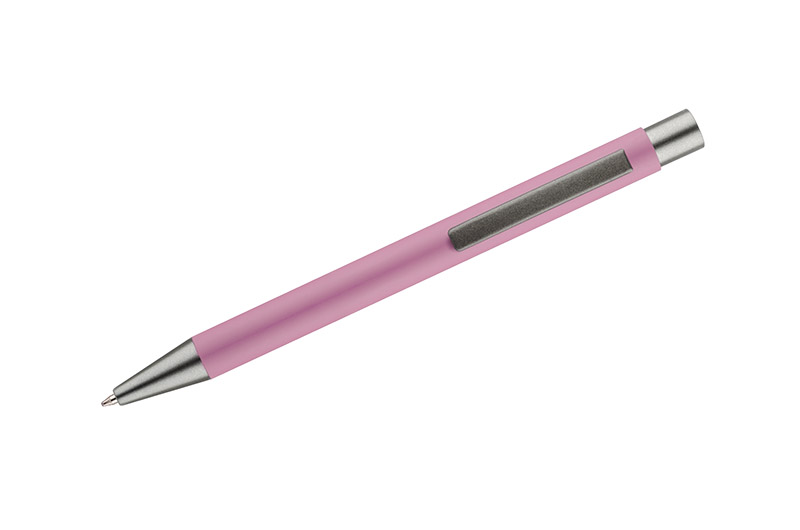 Długopis GOMA to prosty design połączony z przyjemna w dotyku gumowana powierzchnią. Całość jest utrzymana w lekkich, matowych barwach. Wykonany z aluminium. Wykończenia w kolorze grafitowym. Wkład w kolorze niebieskim.