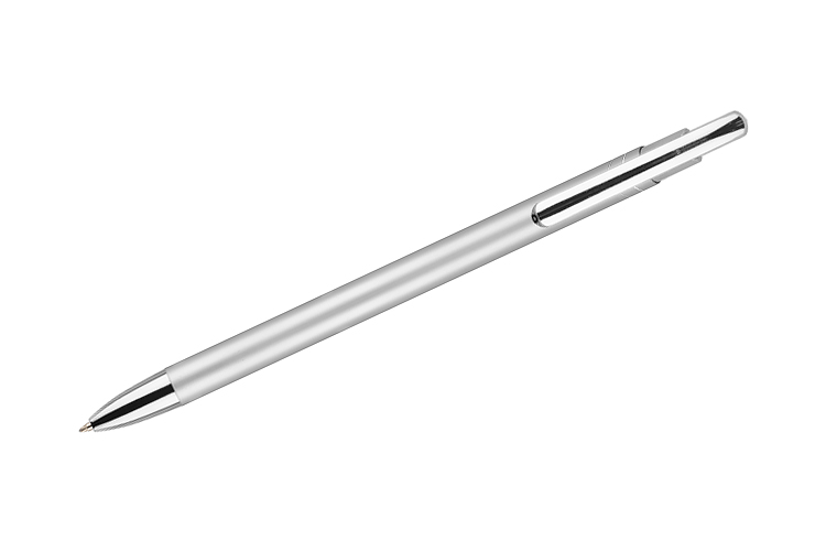 Cienki i zgrabny metalowy długopis w kolorze o metalicznym wykończeniu. Klip i końcówki w kolorze srebrnym chromowanym. AVALO wyróżnia się wśród podobnych długopisów oryginalnym projektem klipu. Korpus ozdobiony został dwoma skośnymi paskami w kolorze srebrnym. Wkład o grubości 0,7 mm w kolorze niebieskim.