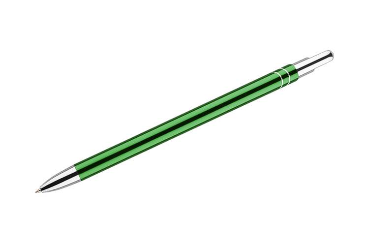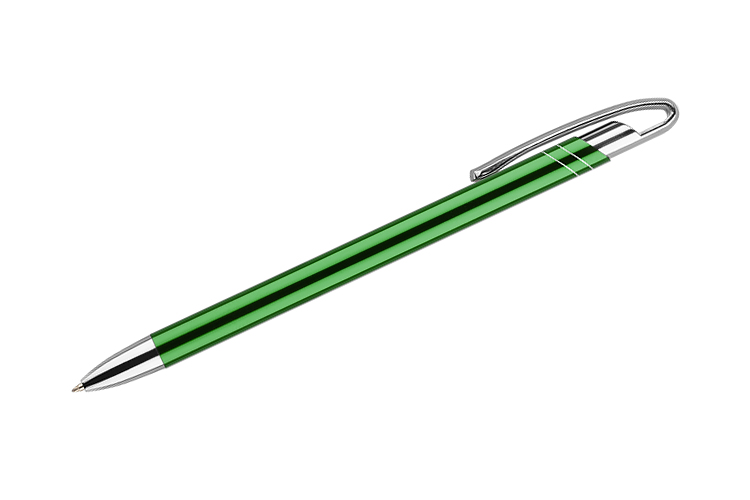 Cienki i zgrabny metalowy długopis w kolorze o metalicznym wykończeniu. Klip i końcówki w kolorze srebrnym chromowanym. AVALO wyróżnia się wśród podobnych długopisów oryginalnym projektem klipu. Korpus ozdobiony został dwoma skośnymi paskami w kolorze srebrnym. Wkład o grubości 0,7 mm w kolorze niebieskim.