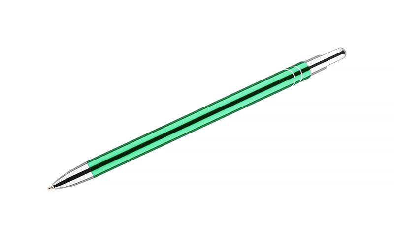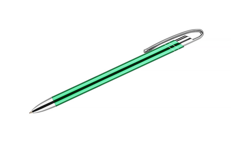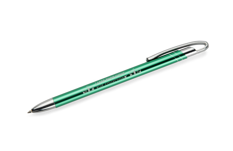 Cienki i zgrabny metalowy długopis w kolorze o metalicznym wykończeniu. Klip i końcówki w kolorze srebrnym chromowanym. AVALO wyróżnia się wśród podobnych długopisów oryginalnym projektem klipu. Korpus ozdobiony został dwoma skośnymi paskami w kolorze srebrnym. Wkład o grubości 0,7 mm w kolorze niebieskim.