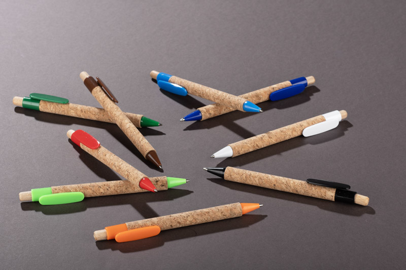Długopis KORTE nawiązuje swoim wyglądem do idei recyclingu. Korpus został wykonany z naturalnego korka, a przycisk z drewna. Wykończenia z tworzywa sztucznego w żywych kolorach dodają mu uroku. Wkład w kolorze niebieskim.