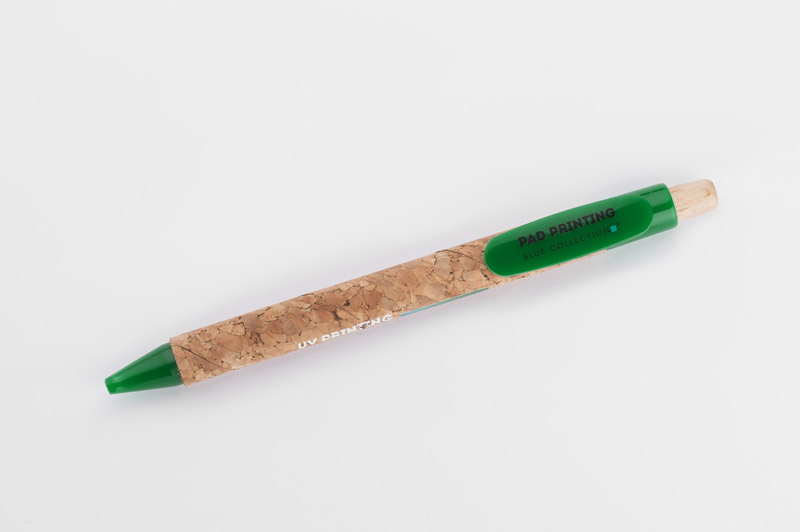 Długopis KORTE nawiązuje swoim wyglądem do idei recyclingu. Korpus został wykonany z naturalnego korka, a przycisk z drewna. Wykończenia z tworzywa sztucznego w żywych kolorach dodają mu uroku. Wkład w kolorze niebieskim.