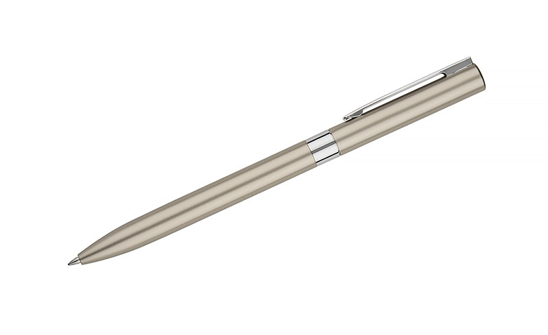 Długopis GELLE to elegancja i wygoda pisania w jednym. Długopis wykonany jest z metalu z wykończeniami chromowanymi lub złoconymi i posiada mechanizm typu twist. Żelowy wkład o grubości 0,5 mm w kolorze niebieskim.