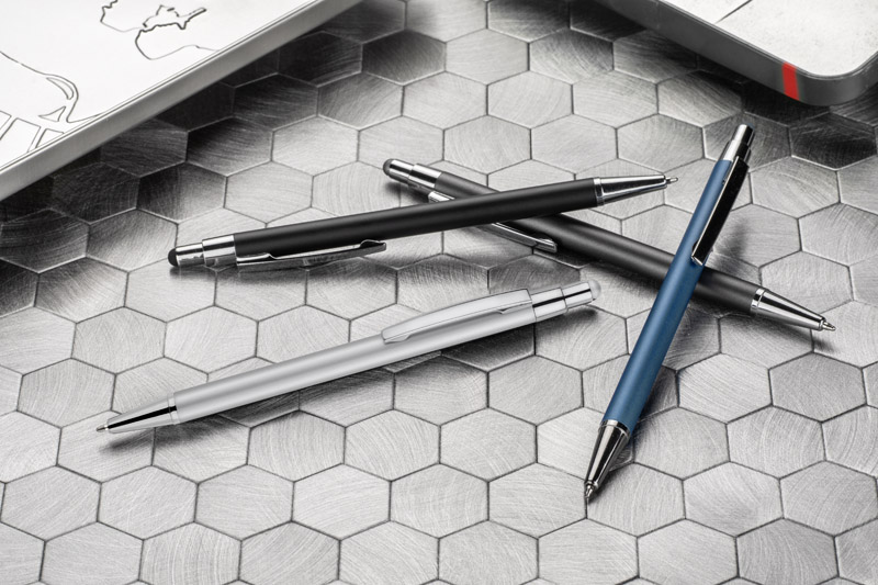 DAWEI to klasyczny cienki długopis wykonany z metalu w stonowanych kolorach dla miłośników ponadczasowego uniwersalnego wzornictwa. Na górze końcówka typu touch do obsługi ekranów dotykowych w kolorze dopasowanym do koloru korpusu. Długopis automatyczny. Wkład typu X20 o grubości 1.0 mm w kolorze niebieskim.