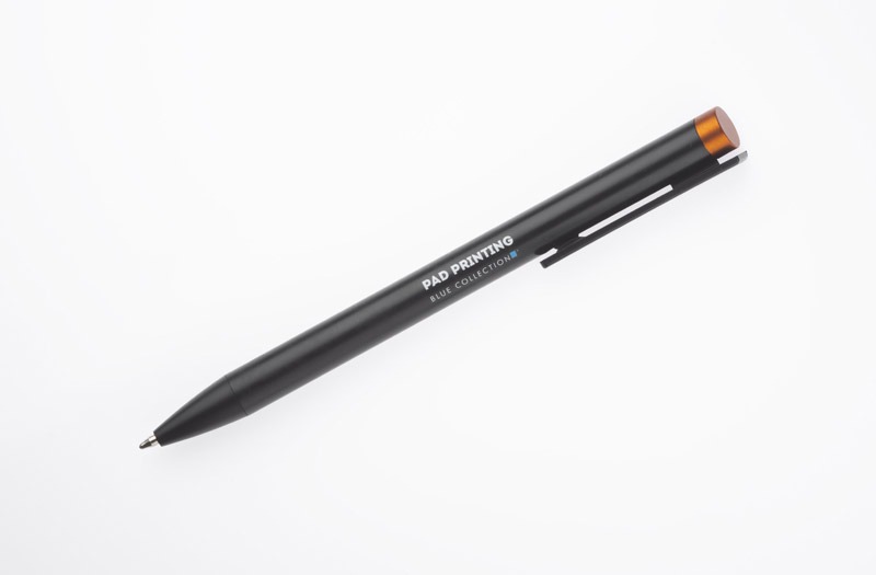 ALI to wyjątkowy długopis umożliwiający wykonanie znakowania w kolorze zbliżonym do końcówki długopisu oraz całkowicie zaskakującego grawerowania w dwóch kolorach - w kolorze zbliżonym do końcówki długopisu oraz białym (kolor aluminium). Czarny metalowy korpus oraz czarne wykończenia stanowią idealne tło dla kolorowego grawerowania. Długopis automatyczny. Wkład typu X20 o grubości 1.0 mm w kolorze niebieskim.