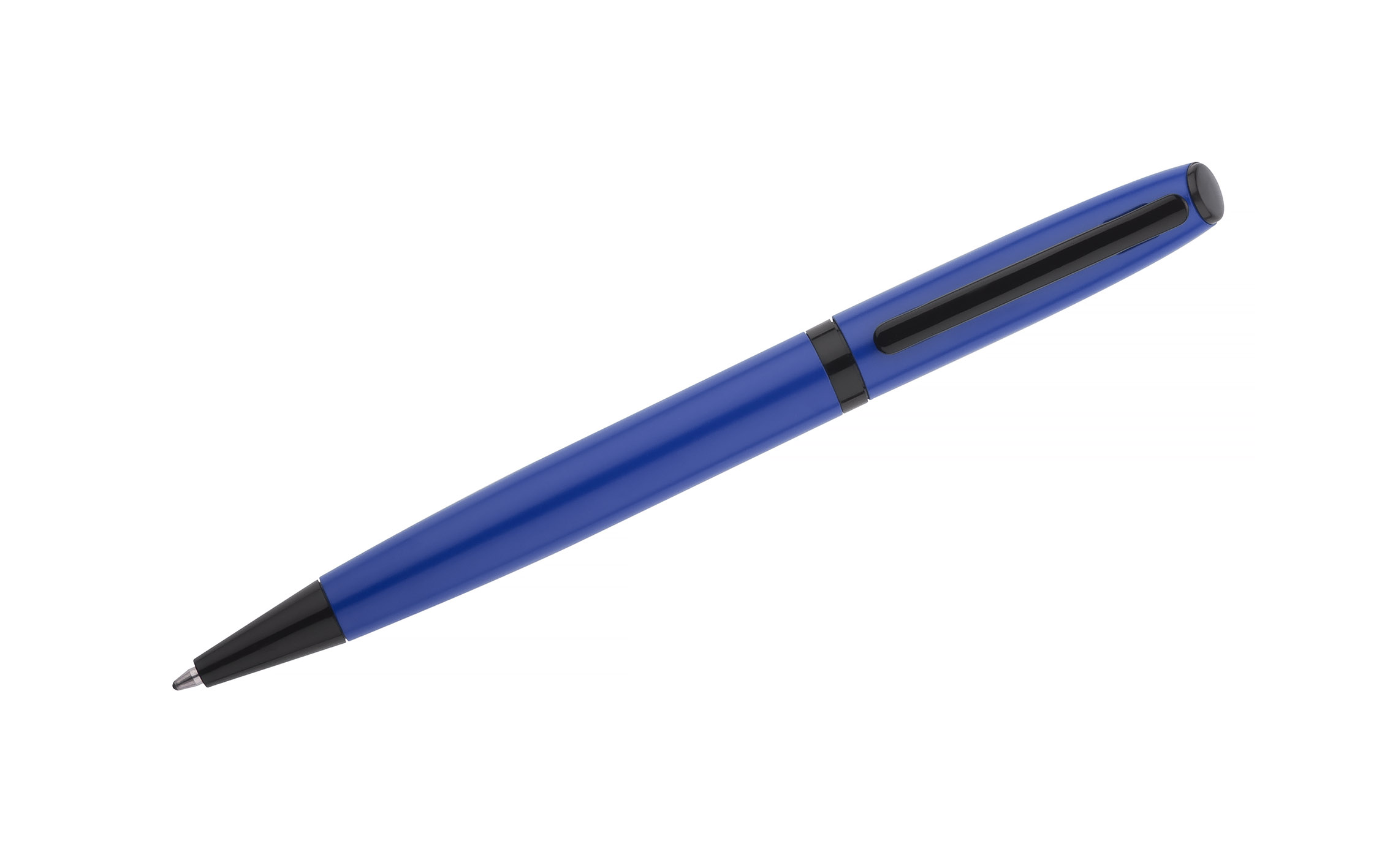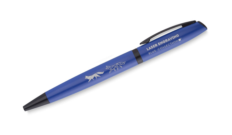 RIO to elegancki długopis zapakowany w papierowy kartonik dopasowany kolorystycznie do obudowy długopisu. Matowy kolor ładnie kontrastuje z czarnymi wykończeniami. Długopis z mechanizmem typu twist, z wkładem typu G2 w kolorze niebieskim.
