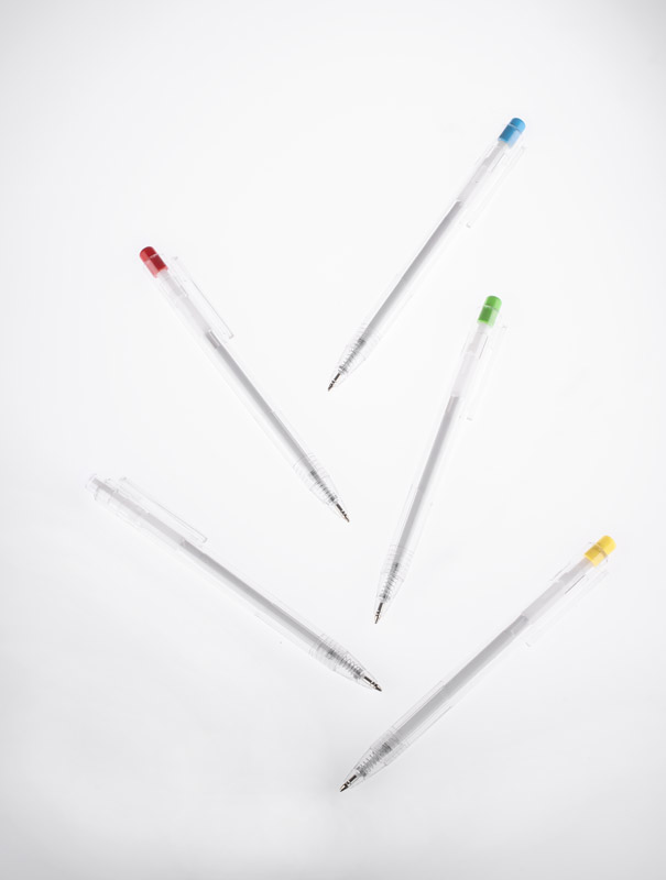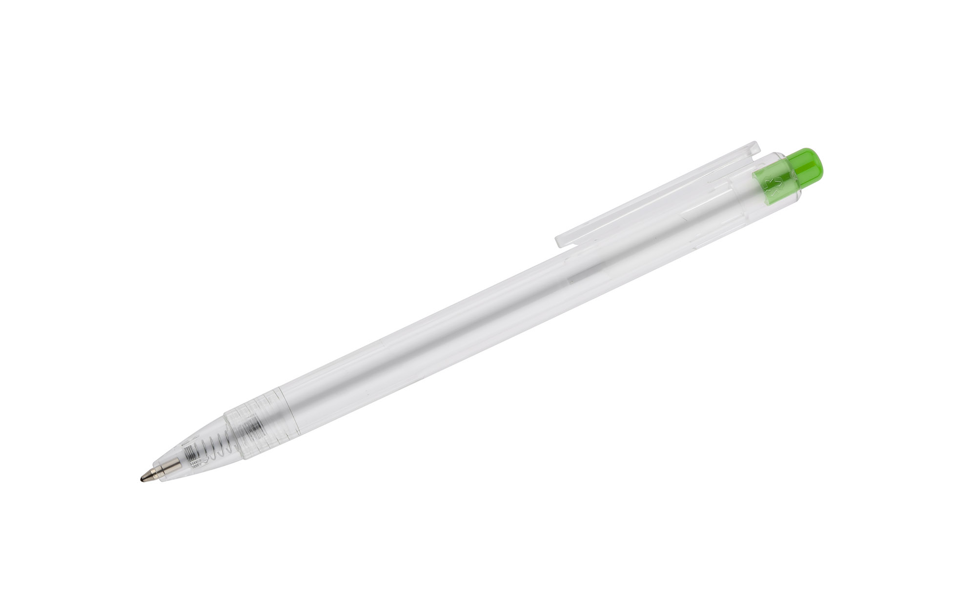Długopis KLIIR powstał w całości z tworzywa PET po recyklingu (rPET). Ten prosty gadżet pokazuje nam, jak świadomie możemy gospodarować odpadami z tworzywa sztucznego i tworzyć z nich nowe przydatne przedmioty. Przezroczysty bezbarwny korpus długopisu ładnie połączony jest z przyciskiem w żywych kolorach. Długopis automatyczny, wkład typy G2 w kolorze niebieskim.