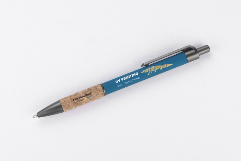 Długopis KUBOD to klasyczny model o prostym, eleganckim kształcie, idealny do znakowania. Aluminiowy korpus pokryty został matową powłoką soft touch, która zwiększa komfort użytkowania. Naturalny korek w części chwytnej przyciąga uwagę i wyróżnia produkt na tle standardowych modeli. Metaliczne akcenty z tworzywa dodają całości nowoczesnego charakteru. Długopis posiada mechanizm automatyczny i jest wyposażony w niebieski wkład typu X20 (wymienny, niedostępny w naszej ofercie).