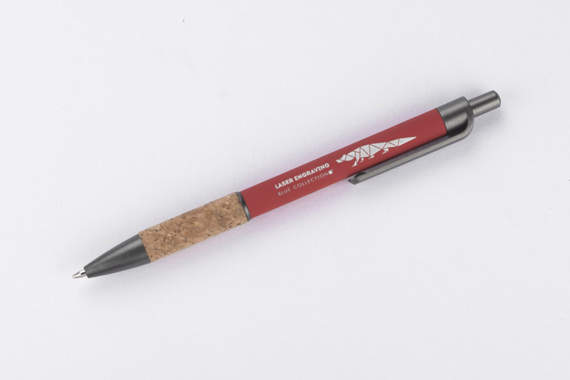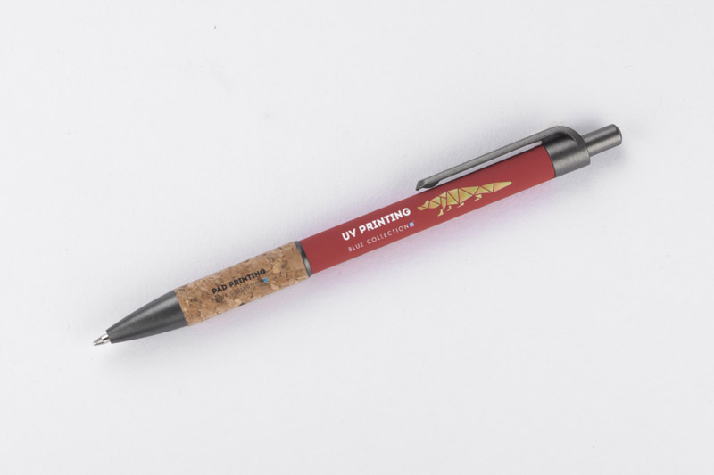 Długopis KUBOD to klasyczny model o prostym, eleganckim kształcie, idealny do znakowania. Aluminiowy korpus pokryty został matową powłoką soft touch, która zwiększa komfort użytkowania. Naturalny korek w części chwytnej przyciąga uwagę i wyróżnia produkt na tle standardowych modeli. Metaliczne akcenty z tworzywa dodają całości nowoczesnego charakteru. Długopis posiada mechanizm automatyczny i jest wyposażony w niebieski wkład typu X20 (wymienny, niedostępny w naszej ofercie).