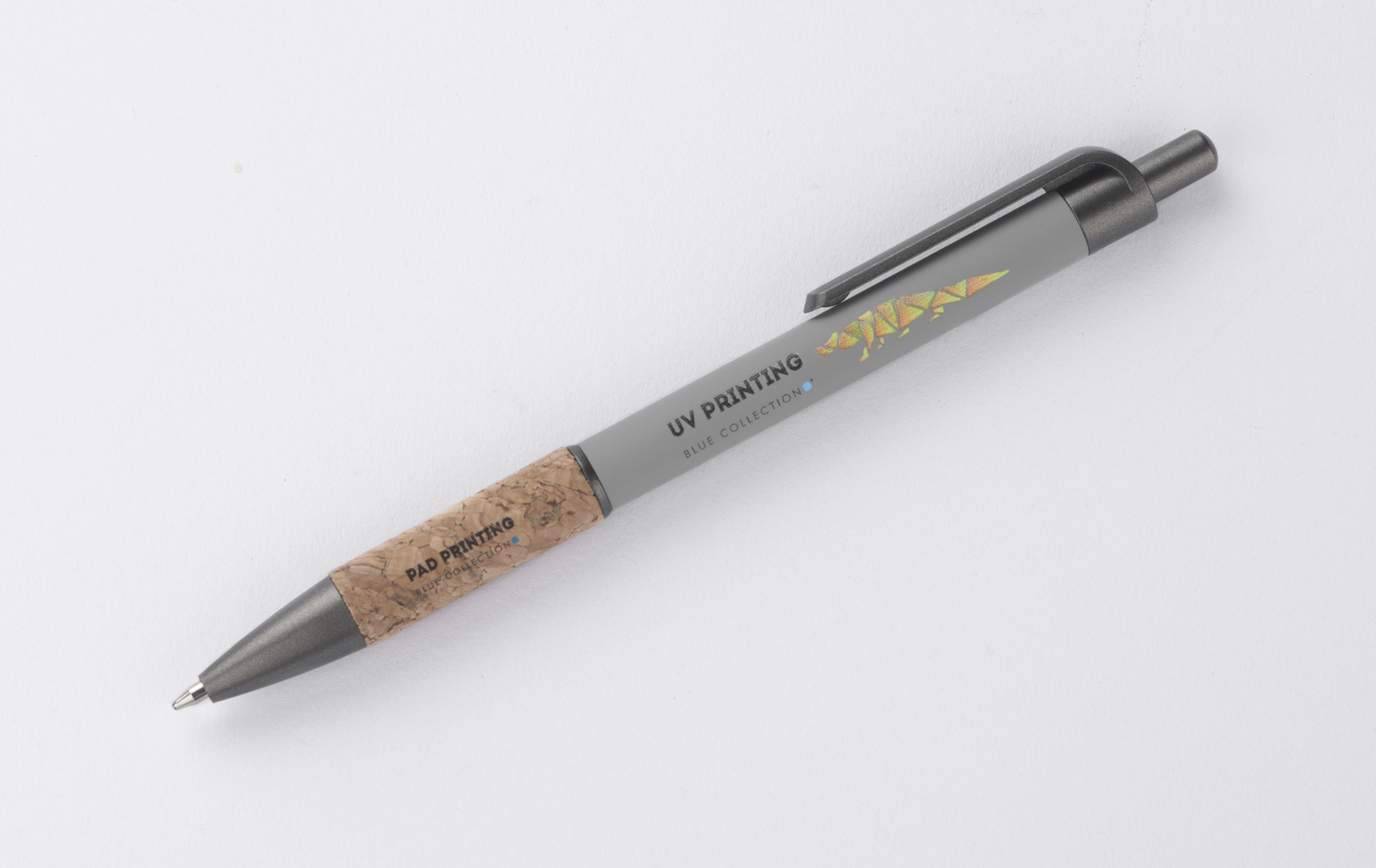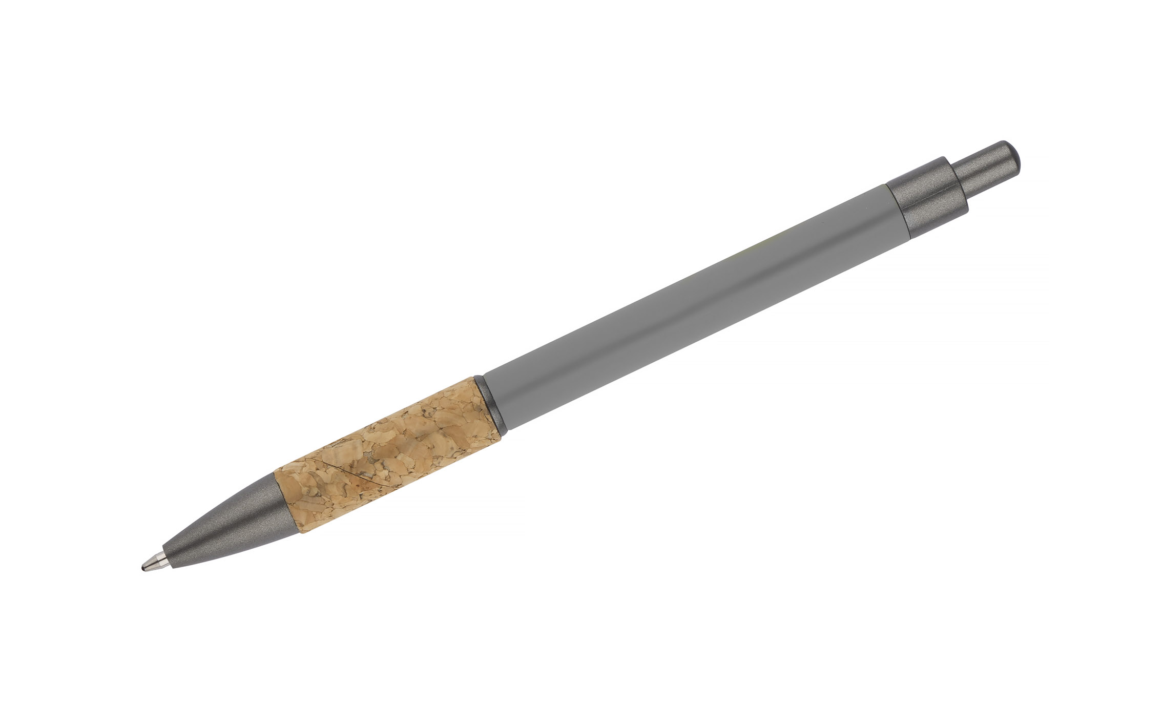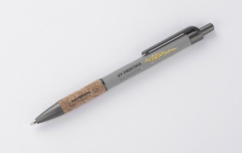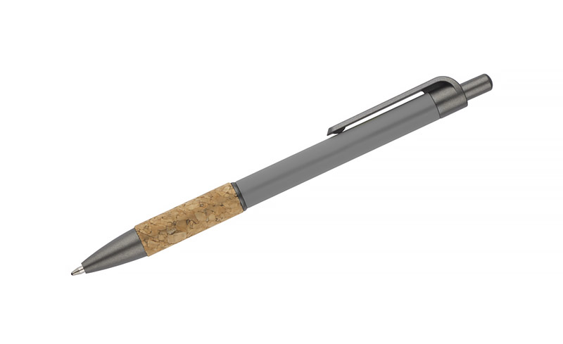 Długopis KUBOD to klasyczny model o prostym, eleganckim kształcie, idealny do znakowania. Aluminiowy korpus pokryty został matową powłoką soft touch, która zwiększa komfort użytkowania. Naturalny korek w części chwytnej przyciąga uwagę i wyróżnia produkt na tle standardowych modeli. Metaliczne akcenty z tworzywa dodają całości nowoczesnego charakteru. Długopis posiada mechanizm automatyczny i jest wyposażony w niebieski wkład typu X20 (wymienny, niedostępny w naszej ofercie).