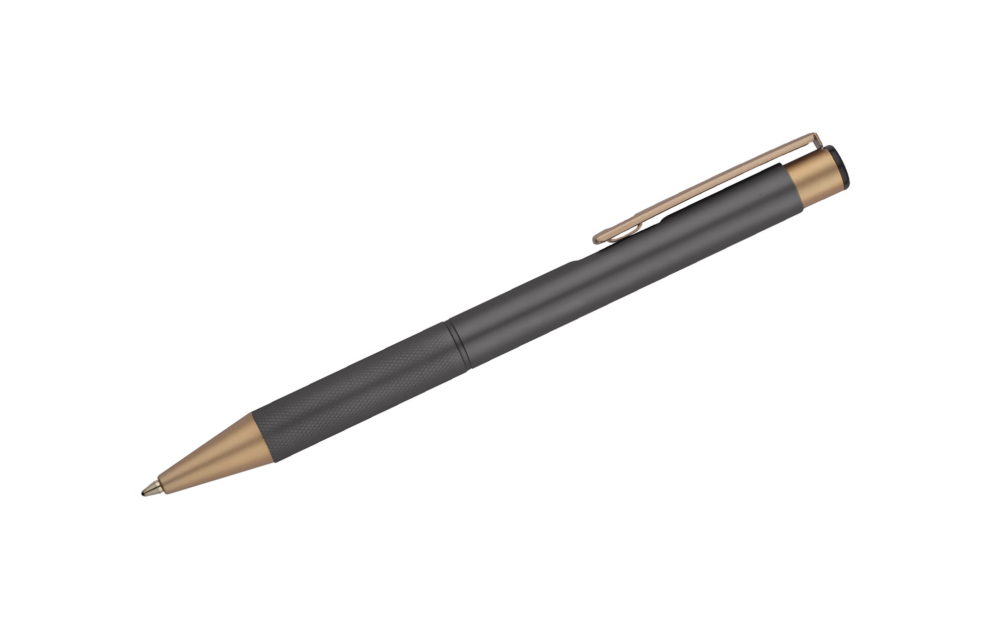 Długopis VITE to elegancki model wykonany z metalu, wyposażony w automatyczny mechanizm wysuwu. Korpus w matowym wykończeniu kontrastuje z chromowanymi detalami i klipem w kolorze szampańskiego złota. Długopis posiada wkład typu G2 z tuszem półżelowym o grubości pisania 1,0 mm, który zapewnia płynny, równy zapis. Dzięki solidnej konstrukcji i starannemu wykończeniu stanowi idealny gadżet reklamowy dla osób ceniących nowoczesny design i precyzję pisania.