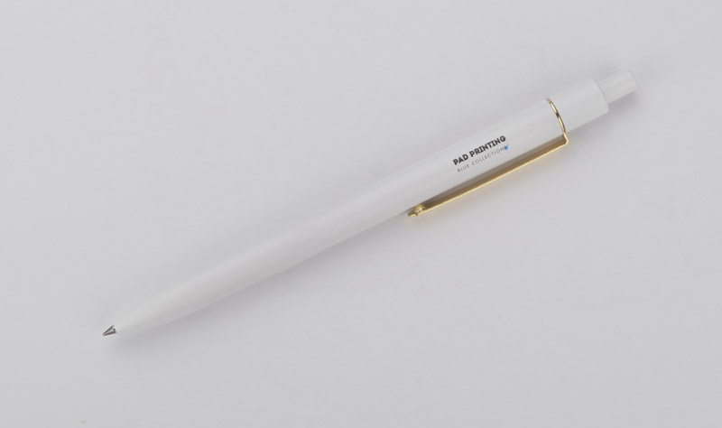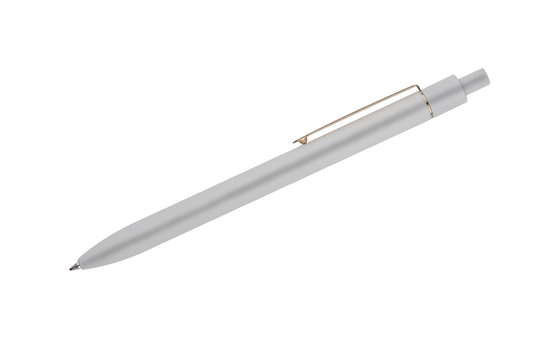 Stylowy długopis aluminiowy z matowym wykończeniem i klipem w kolorze złotym.