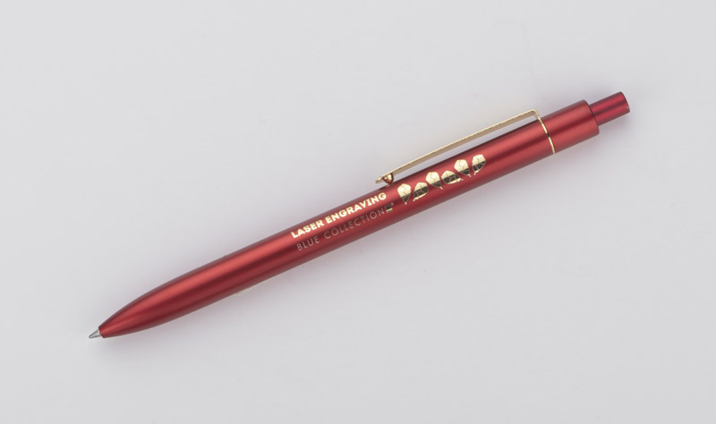Stylowy długopis aluminiowy z matowym wykończeniem i klipem w kolorze złotym.