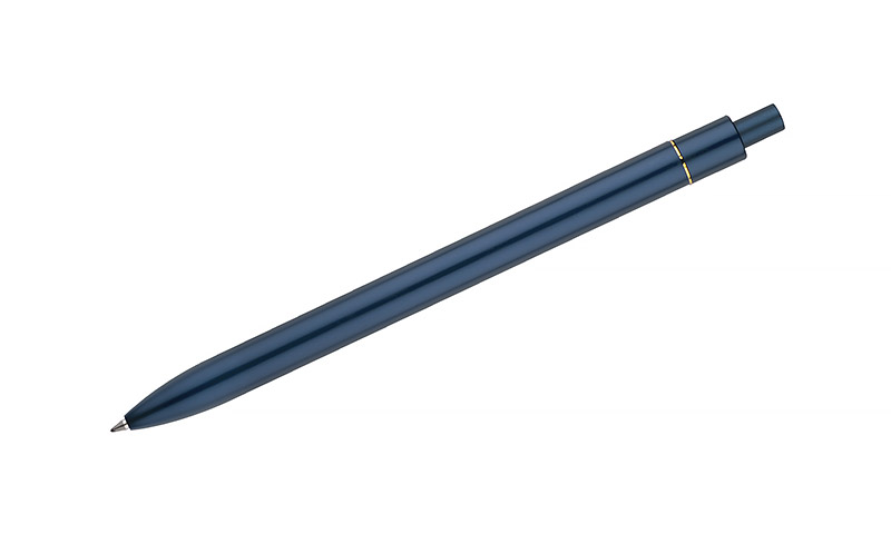 Stylowy długopis aluminiowy z matowym wykończeniem i klipem w kolorze złotym.